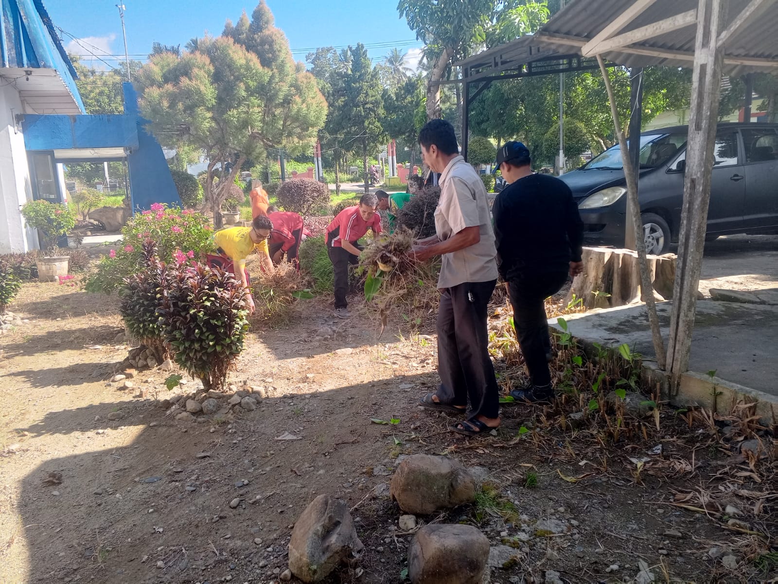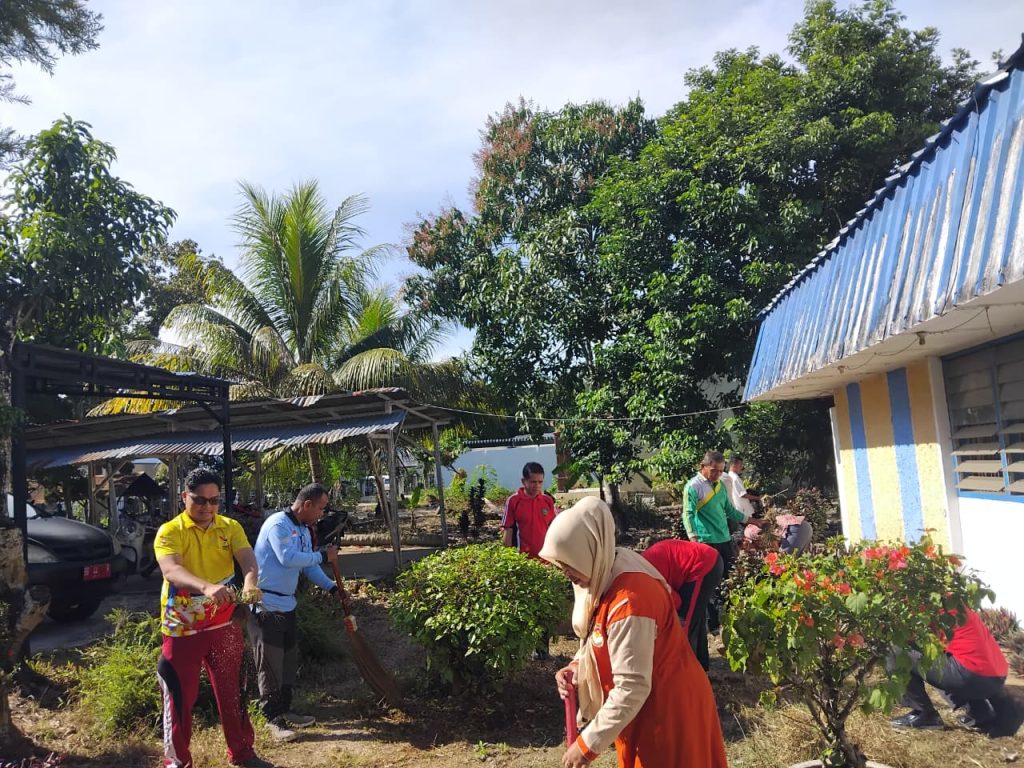Amatan media, seluruh pegawai melaksanakan gotong royong dengan penuh semangat.