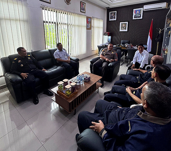 Kapolres Batu Bara, AKBP Doly Nelson H.H. Nainggolan, menerima kunjungan Kepala Kantor Bea Cukai Kuala Tanjung, Bahtiar Rifai, beserta jajaran, Rabu (15/04/2026) sekira pukul 10.30 WIB di ruang kerja Kapolres Batu Bara.