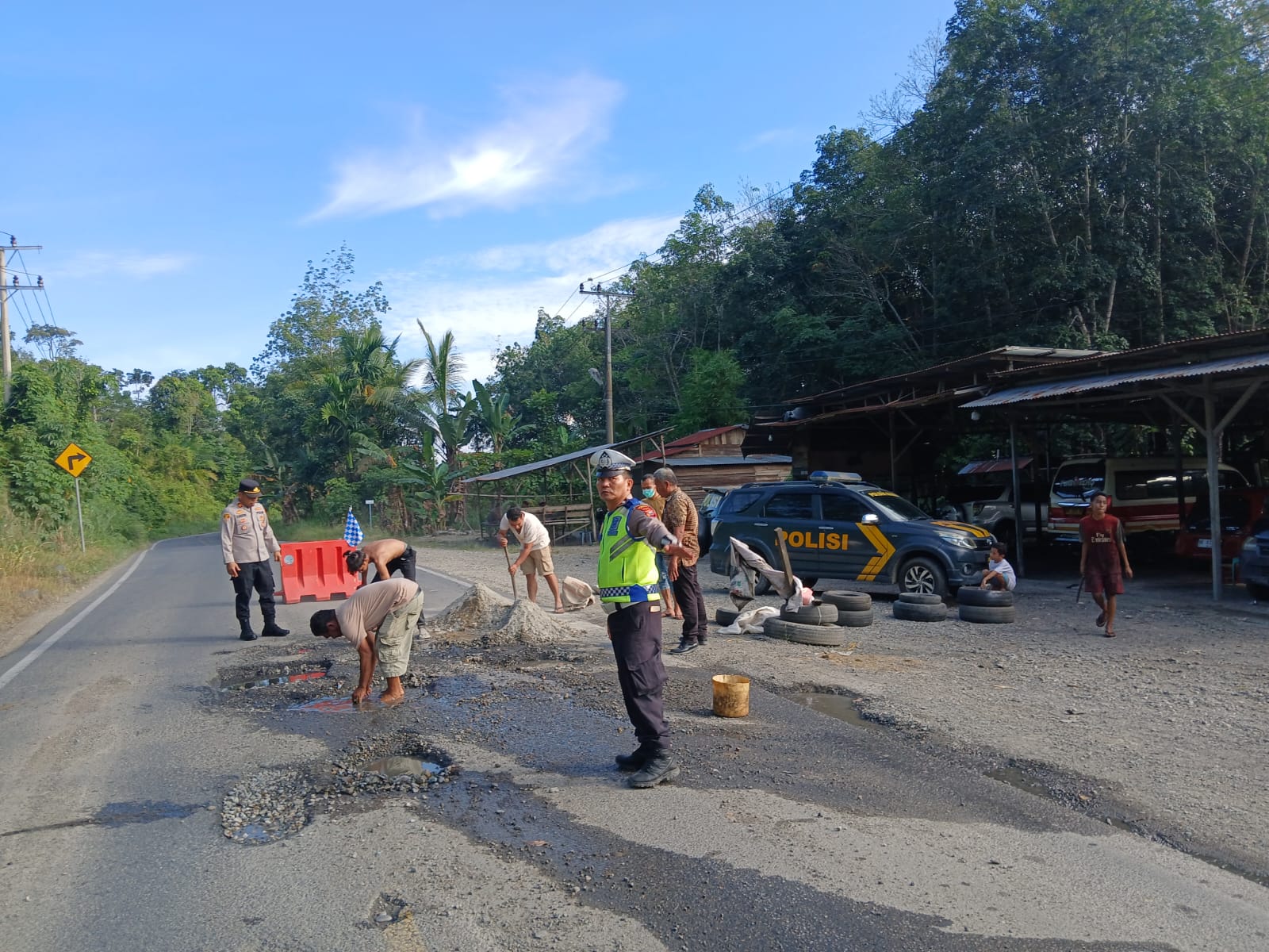 Tanpa basa basi, Kapolsek Siabu mengajak warga bergotong royong dengan biaya seadanya untuk menghindari kecelakaan lalu lintas yang melewati jalan tersebut.