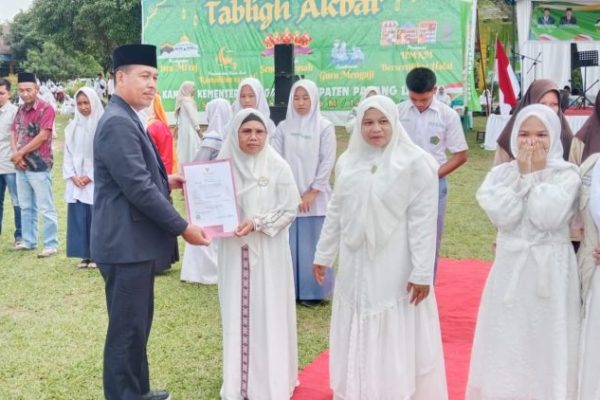 Padang Lawas – Fokusteime.com-Kementerian Agama ( Kemenag) Kabupaten Padang Lawas bekerjasama dengan Dharma Wanita Persatuan ( DWP) melaksanakan kegiatan Tabligh Akbar peringatan isra mi’raj Nabi Muhammad SAW, dan penyambutan bulan suci ramadhan 1447 H, tahun 2026 di Lapangan MTs N 1 Padang Lawas, Sibuhuan, Kecamatan Barumun, Sabtu (14/2/26).