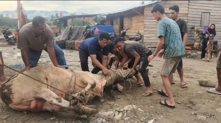 Kegiatan sosial tersebut diwujudkan melalui penyembelihan seekor lembu yang kemudian dagingnya dibagikan kepada warga di wilayah Kotanopan dan sekitarnya, Rabu (19/2/2026). Aksi berbagi ini menjadi bentuk kepedulian sosial sekaligus ungkapan syukur atas nikmat dan rezeki yang telah diberikan.