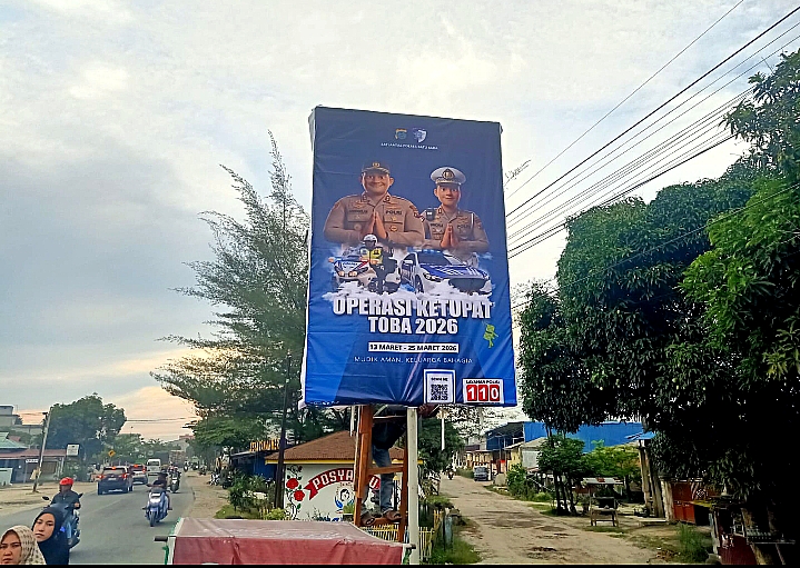 Satuan Lalu Lintas (Satlantas) Polres Batubara memasang banner /baleho himbauan keselamatan lalu lintas di sejumlah titik strategis, Senin (16/3/2026). Kegiatan ini merupakan bagian dari Satgas Preemtif Operasi Keselamatan ketupat toba 2026 yang bertujuan meningkatkan kesadaran masyarakat dalam berlalu lintas.