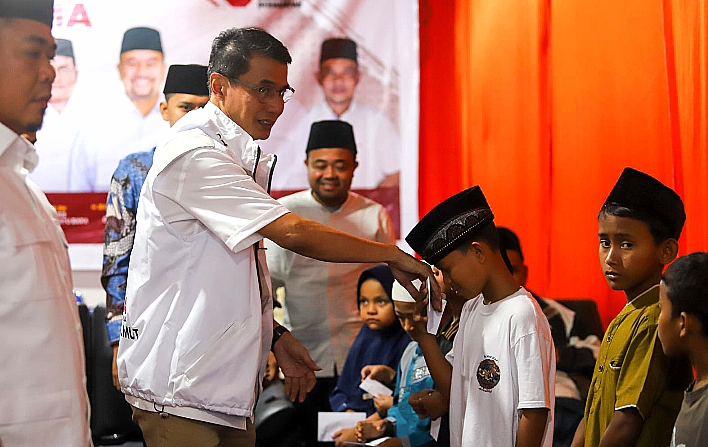 Hal tersebut disampaikannya pada saat berbuka puasa bersama dan penyantunan anak yatim-piatu yang diselenggarakan oleh DPC Partai Gerindra Kabupaten Batu Bara di Kantor DPC Gerindra, Kecamatan Lima Puluh, Senin (16/3/2026).